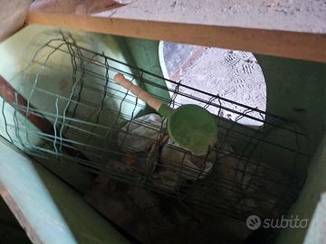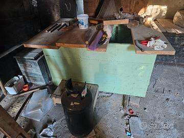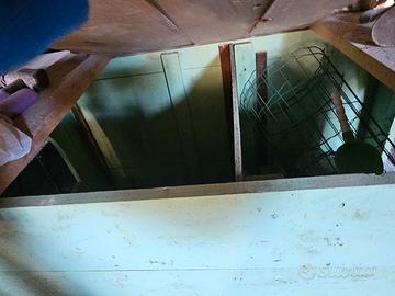 buongiorno, vendo cuccia in legno a due scomparti divisi internamente da un divisorio Estraibile, vendo per inutilizzo, il tetto è quello che è, consiglio di aggiungere una ondulina o qualcosa per evitare l'acqua entri, se rimane sotto la pioggia.
