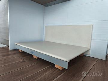 Vendo per inutilizzo, originale cuccia artigianale in legno, simil pelle imbottita e profilo in alluminio spazzolato. Regalo in aggiunta la possibilità di aggiungere il nome del proprio animale, scegliendo tra vari colori. Naturalmente necessita di un ulteriore materassino, è pensata infatti come una struttura letto, capace di sopraelevare il nostro amico per preservarlo dal pavimento, quindi caldo/freddo, e renderlo più comodo. Dimensioni: L. 95 cm; H. 45 cm; P. 65 cm