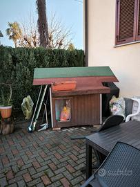 vendo cuccia per cane taglia grande , base 1,2 m per 92cm per 1,5 m di altezza circa. Tetto resistente all'acqua con isolante per tetti, realizzata a mano con perline e isolata con pannelli di polistirolo.