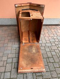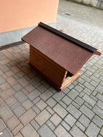 Vendo cuccia da esterno in legno coibentata usata ma tenuta molto bene. Dimensioni adatte a cane taglia medio piccola (tipo cocker, beagle, volpino o barboncino). Piedini per rialzo da terra, tetto idrorepellente, meccanismo di sblocco per apertura totale per la pulizia interna.