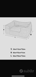 Cuccia morbida per cani taglia M in tessuto argentato con fantasia floreale, completa di cuscino interno coordinato e bordi alti imbottiti in poliestere anallergico. ��Dettagli articoloMisure taglia M: circa 66 × 55 × 21 cm (L × W × H), ideale per cani di taglia piccola/media. ��Imbottitura in fibra di poliestere di alta qualità, soffice e sostenuta, per offrire comfort e buon supporto alle articolazioni. ��Rivestimento liscio, facile da pulire, adatto all’uso interno su pavimento, divano o in angolo notte. ��Condizioni e disponibilità Articolo nuovo, mai usato, senza difetti visibili né segni di usura. ��Disponibili più pezzi della stessa misura e fantasia; per acquisti multipli scrivimi in chat così creo un unico pacco.