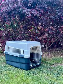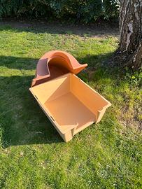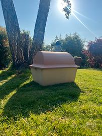 Cuccia cane in plastica con possibilità di togliere la copertura per pulizia. Misure H50 P65 L50. Ritiro a domicilio a carico dell'acquirente. PS disponibile anche trasportino H40 L35 P57) a 15 euro