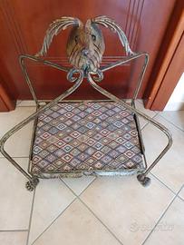 Indistruttibile cuccia per cani in ferro battuto effetto anticato dimensioni L. 55cm P. 41,5cm H. 57,5cm dimensioni massimo ingombro (con testa e piedi) L. 62cm P. 48,5cm H. 68,5cm. Le dimensioni del cuscino sono 52cmX40cm.