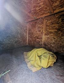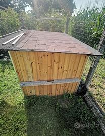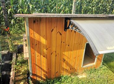 Cuccia fai da te in legno. mai usata ma con qualche usura dovute dalle interperie. Ritiro a carico dell'acquirente. Misure; 166*125cm, altezza 130cm grandezza porta di entrata 35*57