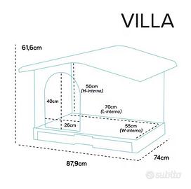CUCCIA CASETTA PER CANE PER ESTERNO E INTERNO 87.9x74x61.6 cm Accogliete il vostro fedele amico con la cuccia Villa, un rifugio confortevole e sicuro progettato appositamente per cani di taglia media. -Realizzata con materiali di alta qualità e caratteristiche innovative, la cuccia Villa offre un ambiente accogliente all'aperto per il vostro compagno a quattro zampe. -Resistenza e Durabilità Realizzata in plastica resistente alla corrosione e agli agenti atmosferici, la cuccia Villa è progettata per durare nel tempo, offrendo un rifugio resistente e affidabile per il vostro cane. -Tetto Sollevabile per una Circolazione d'Aria Ottimale Il tetto sollevabile garantisce una buona circolazione d'aria durante le giornate più calde, mantenendo il vostro cane fresco e confortevole anche nelle giornate estive più calde. -Design Rialzato con Protezione Sigillata La base rialzata e la progettazione di protezione sigillata evitano accumuli di acqua e sporcizia all'interno della cuccia, garantendo un ambiente pulito e asciutto per il vostro cane. - Montaggio Veloce e Semplice Con un tempo di montaggio di soli 10 minuti e superfici lisce, la cuccia Villa è estremamente facile da montare. - I tetti rimovibili consentono una pulizia semplice ed efficace, mantenendo la cuccia sempre fresca e igienica. - Caratteristiche principali : Cuccia in plastica Adatta all'esterno Per cani di taglia media Base rinforzata rimovibile Pavimento rialzato Previene accumuli d'acqua Tetto apribile Facile da montare Dimensioni: 87.9x74x61.6 cm Colore Marrone