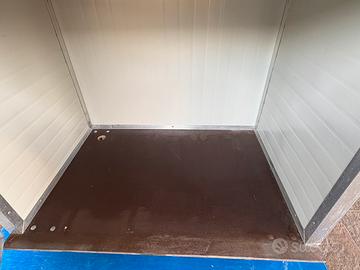 Cuccia coibentata 4 cm, ogni pannello è bordato in alluminio. Base è fatta con un pianale in fenolico che è compresso di betulla trattato, anti graffio e perfettamente lavabile spesso 12 mm. Rialzata attraverso dei piedi in acciaio inox alti 10 cm. Misure modello 100 x 70 h 70 interno 92 x 62 h 70 Ingombro esterno 100 x 70 h 88. Dotata di Bascule bandella a strisce e rigida. Ritiro a mano. Prezzo non trattabile.