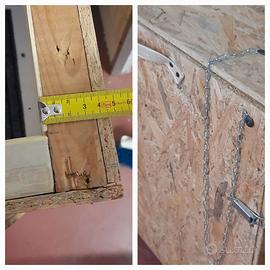 Cuccia coibentata con 3 cm. di polistirolo e rivestita internamente di legno. Completamente apribile per la pulizia e corredata di una confortevole pedana, asportabile all'esigenza.