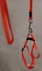 3 pettorine complete di guinzaglio colore marrone, tartan e arancione