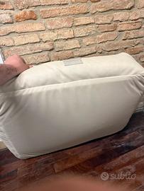 Cuccia cuscino per cani in ecopelle duplefas color salvia chiaro, marca Anteprima Made in Italy. Sfoderabile cuscino un lato in pelle e un lato in tessuto in base alla stagione, lavabile, morbido. Misure 80x65 h20