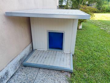Vendo causa inutilizzo cuccia da esterno realizzata artigianalmente . Coibentazione con pannelli da 5cm, angoli anti morso, tenda rimovibile nell'ingresso, tetto rimovibile per pulizia. Dimensioni ingresso: 30x40. Dimensioni interne: 80x70h75. Dimensioni esterne tetto: 140x 100. Non spedisco.