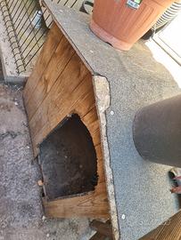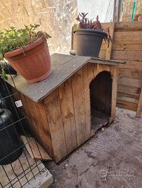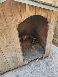 Vendo cuccia in legno robusto, adatta per cani di taglia grande. La struttura principale è solida e il tetto è dotato di una copertura protettiva per la pioggia. Come potete notare dalle fotografie allegate, la cuccia è stata utilizzata e presenta dei chiari difetti estetici. Il legno lungo tutto il bordo dell'ingresso è stato rosicchiato e ci sono alcuni segni di usura sui lati del tetto. Nonostante questi difetti, la struttura fa ancora il suo dovere ed è perfetta per chi cerca un riparo da esterno per il proprio cane a un prezzo molto contenuto. Il ritiro è a mano e a carico dell'acquirente presso la mia abitazione a Fano Resto a disposizione per qualsiasi ulteriore informazione. Potete scrivermi tramite i messaggi della piattaforma.
