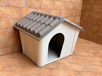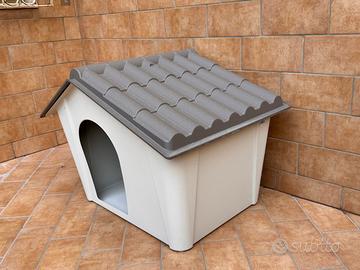 Cuccia da esterno in Resina Polipropilene Antiurto misure 98X78 H.CM 74,3, Colore resistente Beige/Tortora, Impermeabile con Prese d'aria laterali, Tetto removibile, Fondo drenante, Non trattiene umidità.