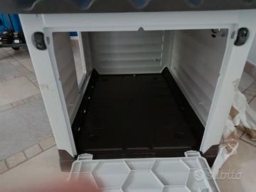 Cuccia da esterno per cane media taglia con sportello laterale asportabile per l'estate e finestra dietro come si può vedere dalle foto. Prezzo iniziale 5 anni fa 130 euro.