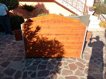 lunghezza 1,75 CM x altezza 1,20 CM x profondita 88 CM.tutto in legno tetto rivestito non so che materiale sia credo an antiscivolo rifiniture in metallo alluminio per inf. 3488090699