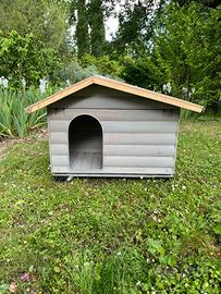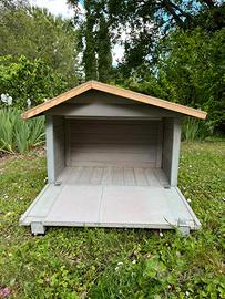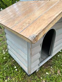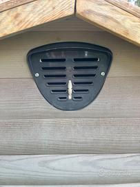 cuccia in legno Ferplast con parete frontale apribile, griglia di ventilazione sul retro, completamente smontabile. facile manutenzione, tetto impermeabile, usata per poco tempo, tenuta bene.