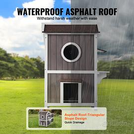 Utilizzo per tutte le stagioni: questa cuccia per gatti selvatici offre una protezione completamente impermeabile con un tetto triangolare in asfalto per un drenaggio efficiente. Include protezioni impermeabili e grondaie in asfalto sulla porta per una protezione efficace contro pioggia e neve.