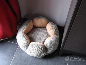 Cuccia per gatti a forma di petalo, rotonda (48 cm circa) in morbido peluche, cuscino soffice e rimovibile, fondo impermeabile. Calda e avvolgente, ideale soprattutto in inverno. Svendo a 12 euro non trattabili. Solo consegna a mano Asti ovest via ivrea