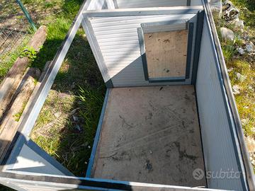 Disponibile solo per ritiro in zona, cuccia grande composta da zona notte più zona giorno. La cuccia è da esterno, con tetto apribile da riparare per il ferretto laterale ( una cosa da poco). Nuovo costa oltre 750€ è stata usata praticamente mai perché i nostri cani ormai stanno sotto le logge di casa. È fornita di accessori, porticina trasparente. È per due cani. Tutta coibentata. Tetto apribile per pulirla internamente.
