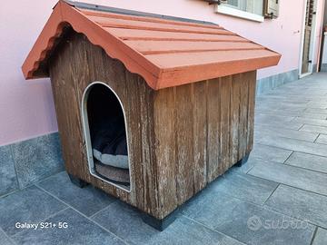 cuccia da esterno molto robusta per cani di media taglia presenta lievi segni di usura, ma tenuta bene