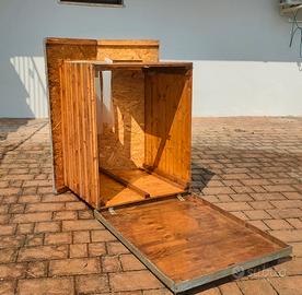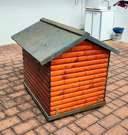 Vendo cuccia in legno per cani di taglia grande. La cuccia si presenta in ottime condizioni ed è dotata di copertura in gomma all'ingresso per proteggere dal freddo, eventualmente rimovibile, e tetto ricoperto da guaina ardesiata per l'impermeabilità dall' acqua. Inoltre, presenta delle cerniere che consentono di scoperchiarla per consentire un' ottimale pulizia interna. Le base della cuccia misura 92 cm 73 cm, mentre l'ingombro della tettoia è 110 x 89 cm. Vendo inoltre, a parte, una pedana riscaldante elettrica in acciaio delle stessa misura interna della cuccia, molto utile soprattutto nel periodo invernale per il benessere del vostro cane. Solo ritiro a mano.