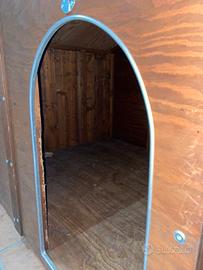 L’ingressoè dotato di bordature protettive in alluminioanti morso e scheggiatura del legno. Tetto e Pavimento multistrato marino facilmente smontabile che permette una facile pulizia interna.