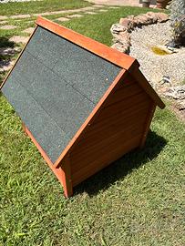 Vendo cuccia in legno per cani di piccola media taglia molto bella tetto in ardesia e fondo removibili per una facile pulizia, con tendina di accesso anti zanzare tenuta al coperto