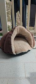 Materiali: Esterno in tessuto marrone e interno in morbido peluche beige. Per taglia piccola per cane/gatto