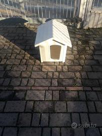 Cuccia per cane in resina . Buono stato, presenta dei morsi su alcuni bordi del tetto e bordo finestra d'ingresso. Misure 74x57x55h .