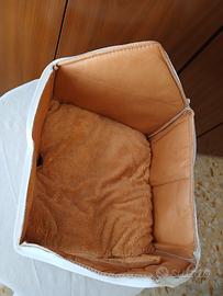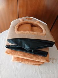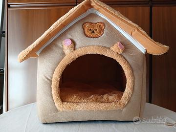 Cuccia a casetta e morbida, per cane tipo chiwawa o gatto. Comprata per la mia cagnolina freddolosa, ma non la usa, resta sulla vecchia cuccia Lavabile. Chiudibile, leggera e portatile. Da ritirare a Roma Giulio Agricola e dintorni