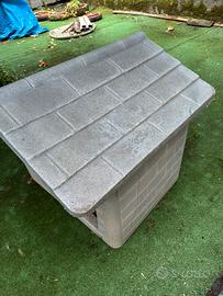 Cuccia per cani di taglia media/grande termica rigida, resistente alle intemperie sia caldo che freddo. La cuccia è solida, impermeabile e facile da pulire, ideale per proteggere il cane da pioggia e freddo. Tetto inclinato per lo scolo dell’acqua. Condizioni: strutturalmente integra, necessita solo di una pulita (come da foto). Misure: in foto Larghezza: 80 cm Lunghezza: 65 cm Altezza: 80 cm Profondita interna: 72 cm La cuccia e’ visionabile a Casamarciano (1 km da Nola)