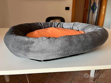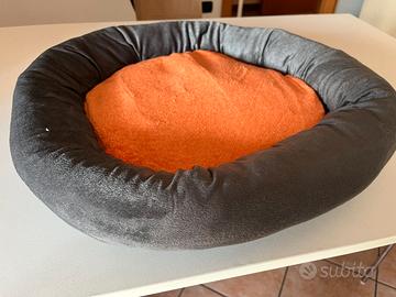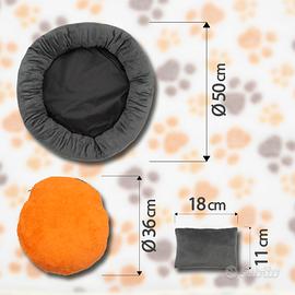 Vendo a 5,00 euro cuccia NUOVA per gatti e cani di taglia piccola. La cuccia si compone di una sacca, di una piccola coperta in pile, di un piccolo cuscino adatto come gioco per il cane e gatto e di un cuscino centrale sfoderabile e lavabile. Il fondo é antiscivolo. peso 0.650 kg. Misure: cuccia 50 cm X 50 cm, coperta in pile 50 cm X 35 cm, cuscino arancione 36 cm.