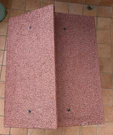 Il Tetto è coibentato e smontabile per permettere una facile pulizia interna e la sua copertura è realizzata in uno speciale materiale impermeabilizzato e isolante, rivestito con scaglie di pietra ardesia colorata, rossa .