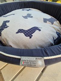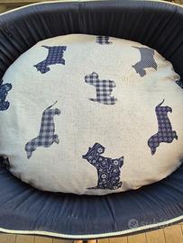 Cuccia per animali con cuscino ditta Fabotex. Misure: lunghezza cm 80, larghezza cm 84.