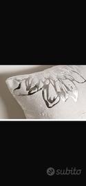Cuccia morbida per cani taglia S in tessuto argentato con fantasia floreale, completa di cuscino interno coordinato e bordi alti imbottiti in poliestere anallergico. ��Dettagli articolo