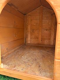 Cuccia per cani o gatti in legno, da esterno con pareti spesse 2 cm in abete trattato con prodotti atossici per l’animale.