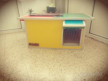 Casa per cane di piccola taglia o per gatto •Interamente costruita a mano •Completamente bordata in alluminio sia il tetto sia i fianchi che sotto e tutte le parti sporgenti,quindi anti morso •Fondo rialzato da terra e rivestito in vin pelle beige lavabile e facilmente pulibile con all interno una morbida spugna •Botola completamente foderata totalmente impermeabile con varie guarnizioni apribile per pulizia con luce controllabile da telecomando • Muri interni lato lungo foderati con paglia per isolamento termico e quelli corti foderati con polistirolo •Esterni completamente resistenti alle intemperie, l acqua scivola via sono stati utilizzati materiali e viti antiruggine, e tutti i bordi sono stati ben siliconati •Fatta in legno e rivestita con un materiale resistente all acqua e al sole •Tendina trasparente dell entrata rimovibile •Ideale per chi ha una villa e lascia dormire i suoi animali fuori offrendoli così un caldo, sicuro e comodo riparo •Misure 80cm lunghezza 50cm profondità 40cm altezza •Il tetto è spiovente e completamente isolato con guarnizioni e silicone resistente all acqua •Comoda tasca all interno della botola contenente il telecomando e una lampadina di riserva •Se interessati vi invio video e altre foto che illustrano meglio il prodotto •Realizzo qualsiasi tipo di cuccia per cani o per gatti su richiesta