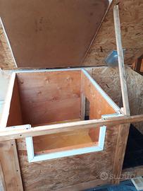 struttura artigianale in legno spazio per riposo trattato con prodotto isolante+ spazio per ciotole alimenti con finestrina copertura in ferro antipioggia trasporto a vostro carico, furgone no automobile.