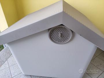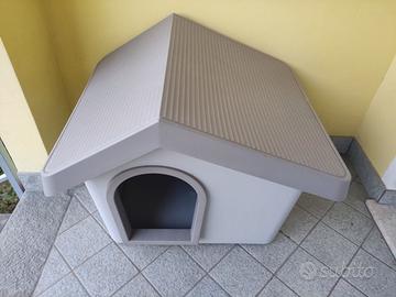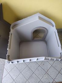 Vendo cuccia in plastica 60 cm x 50 cm, altezza entrata 32 cm . Tetto apribile per pulizia, finestrella sul retro. Mai usata, il cane non vuole entrare, preferisce stare in casa al caldo. Come nuova, vendo a 65 euro