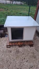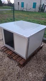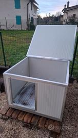 casetta per cane usata, dimensioni esterne 90 x 90 x 68, per cani di taglia medio-grande, realizzata in monopanel, rifinita con angolari, tetto apribile per pulizia. prezzo non trattabile