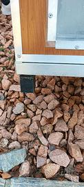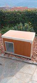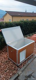 Vendo cuccia per cani coibentata per esterno, ideale per cani di taglia media. La cuccia per cani coibentata da esterno garantisce un ottimo isolamento termico sia d’estate che d’inverno. Realizzata in pannelli isotermici sandwich dogati in allumino con anima in poliuretano da 40 mm colore finto legno(esternamente), bordati con profilati in alluminio anti-morso ed anti-corrosione. Completamente smontabile; il tetto è apribile per permettere l’ispezione ed una facile pulizia, ed è rialzata da terra con piedini in plastica regolabili per garantire una maggiore stabilità ed un maggior isolamento tal suolo. Sul pavimento è presente un foro di scolo cosi da poter pulire internamente la cuccia con idropulitrice