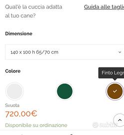 Vendo per inutilizzo cuccia per cani con veranda coibentata, perfetta per l’esterno e garantisce un ottimo isolamento in tutte le stagioni. marca RETEX Apribile nel lato anteriore della zona notte per una facile pulizia, ed è costruita in coibentato spesso 4 cm bordato in alluminio, fenolico e piedi in acciaio inox, Pagata 720,00. misure: Interno zona notte, lunghezza 92, larghezza 62 altezza 70 cm uguale la veranda. tetto 130 x 150. prezzo 200 euro per info tel.379 1522421