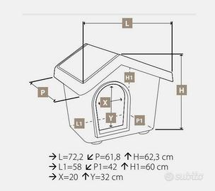 Dimensioni compreso tetto: 72,2 (larghezza) x 61,8 (profondità) x 62,3 (altezza) cm