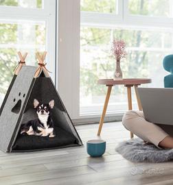 I tuoi cari animali domestici hanno sempre bisogno di un posticino accogliente in cui potersi riposare. Con questa pratica cuccetta potrai offrire ai tuoi tigrotti un luogo protetto per momenti di puro relax. La tenda dal design tipico di una Tipi proteggerà il tuo gattino/piccolo cane un pò dalla luce e dai suoni che lo circondano. Grazie al morbido cuscinetto all’interno, cani di taglia piccola e gatti potranno mettersi comodi.