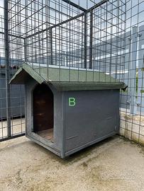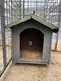 Vendo 2 cucce in legno da esterni per cani di grandi dimensioni, realizzate a mano, rialzate da terra e adatte per tutte le stagioni. Sono usate ma in ottime condizioni sia internamente che esternamente. Entambe sono dotate di gabbia superiore removibile per evitare che il cane ci salga sopra. Tutte e 2 si possono lavare internamente e sono dotate di tappo di scolo. Si possono acquistare singolarmente o entrambe. La cuccia A ha un tetto in coppi che si possono togliere e rimettere; il tetto è apribile per pulizia. La cuccia A la vendo a 100€ la B a 80€. Acquistate insieme vendo a 150€. Le dimensioni interne di entrambe sono di circa 90x60 cm altezza 70 cm. Posso anche offrirmi per consegne qui in zona previo accordo. Non vendo a distanza.