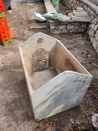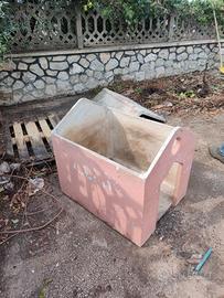 Spaziosa e robusta cuccia in cemento per cani, con copertura superiore rimovibile (sempre in cemento) e finestrella di aerazione, adatta a cani di tutte le taglie (dimensioni 90 X 70 H 80). Preferibile ritiro a mano. Cedo per inutilizzo.