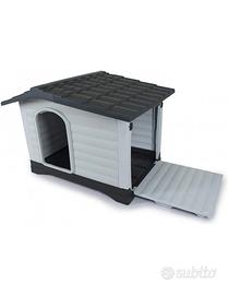 Cuccia per cani, realizzata in PVC ad alta resistenza. Il materiale di cui è composta la cuccia presenta diversi vantaggi rispetto alle cucce tradizionali realizzate in legno o metallo, in quanto si ha una maggior igiene, non è soggetta ad attacchi di parassiti, non richiede manutenzione, non corrode ed è più facile da pulire. Presenta una presa d’aria posteriore. La cuccia ha ottimo isolamento dalle condizioni esterne e raggi UV, facilissima da montare. Presenta una porta anteriore ampia (25 x 39 cm) ed una laterale che, aperta, può essere utilizzata come una rampa (44x x 44 cm). Misure ingombro esterno compreso tetto: 90 x 55 x 65h cm. Misure interne: 80 x 55 x 65h cm.