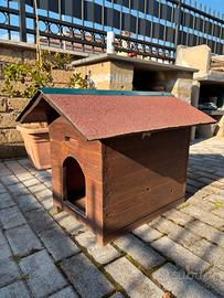 Fatta in legno massello con tettuccio ricoperto con guaina grecata. Dimensioni: lungezza 55.5 cm larghezza 38.5 cm altezza all'apice 57 cm porticina 18×h23 cm Per maggiori informazioni contattra al: n.cell. 3282672772
