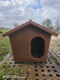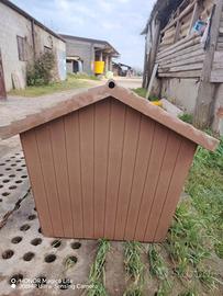 Cuccia marrone per cani in materiale plastico molto leggero ma molto resistente, un blocco solo con fondo con una bella apertura molto carina. Dimensioni: 90 di larghezza, 80 di altezza, 95 di profondità.