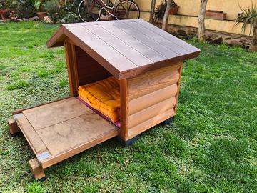 Fantastica cuccia in legno con parete anteriore apribile. Alta qualità, presa d'aria posteriore. Adatta a cani di piccola taglia. Buonissime condizioni. Misure massime del tetto cm. 78x57, h 62. Non spedisco, solo ritiro diretto.