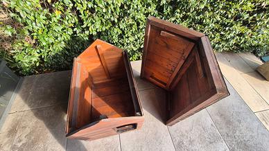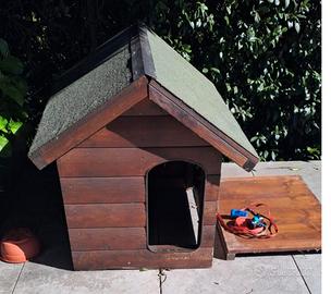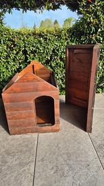 Vendo cuccia per cani in legno con tetto impermeabile, ma sempre stata al comperto. Usata poco ma con qualche segno del tempo. smontabile per la pulizia, misure di ingombro 95x60 alta 80 cm